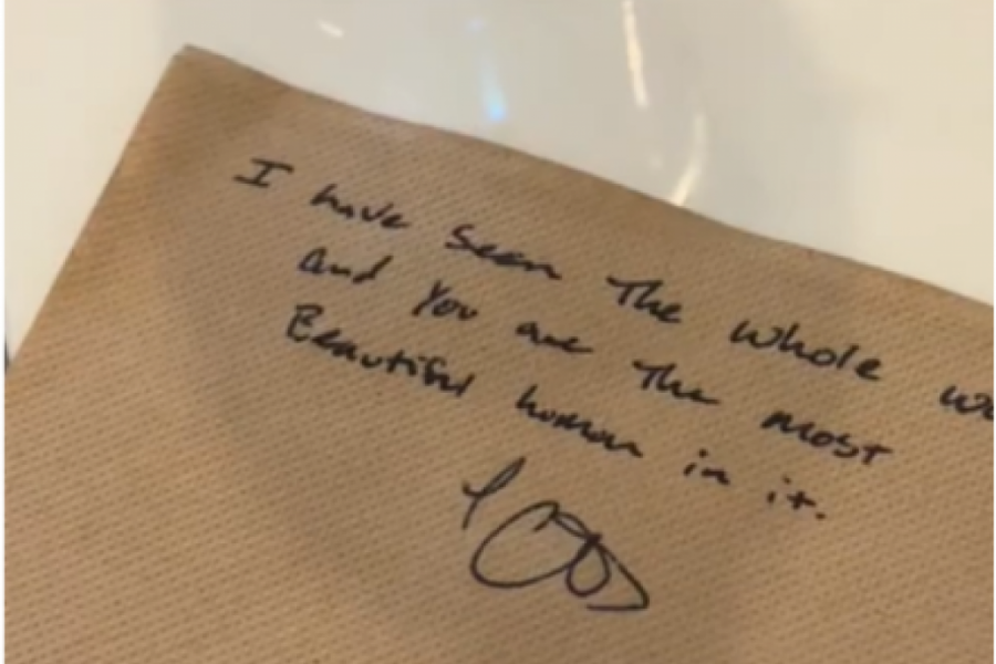 Naime, dok je čekala na aerodromu, pilot joj je u prolazu ostavio rukom napisanu poruku na ubrusu i bez reči otišao.