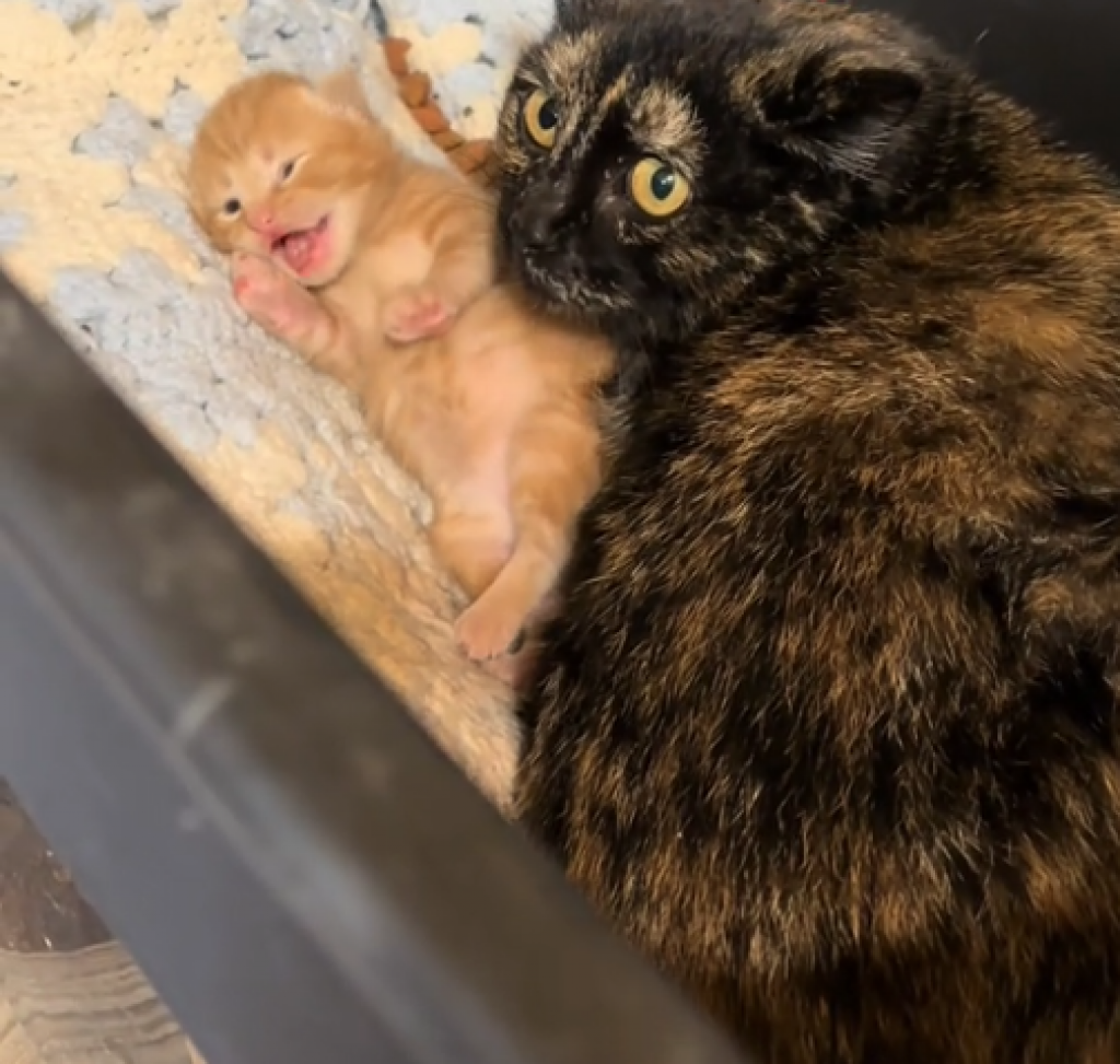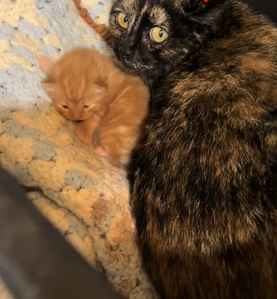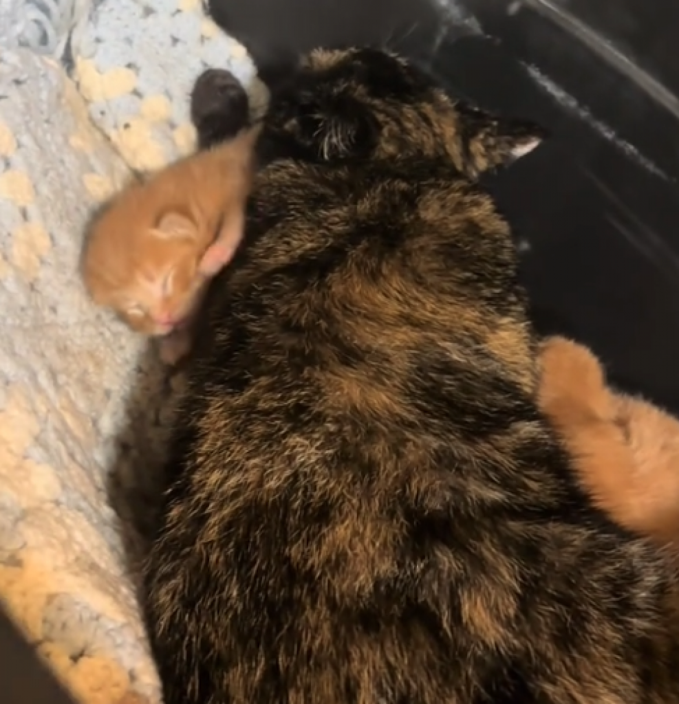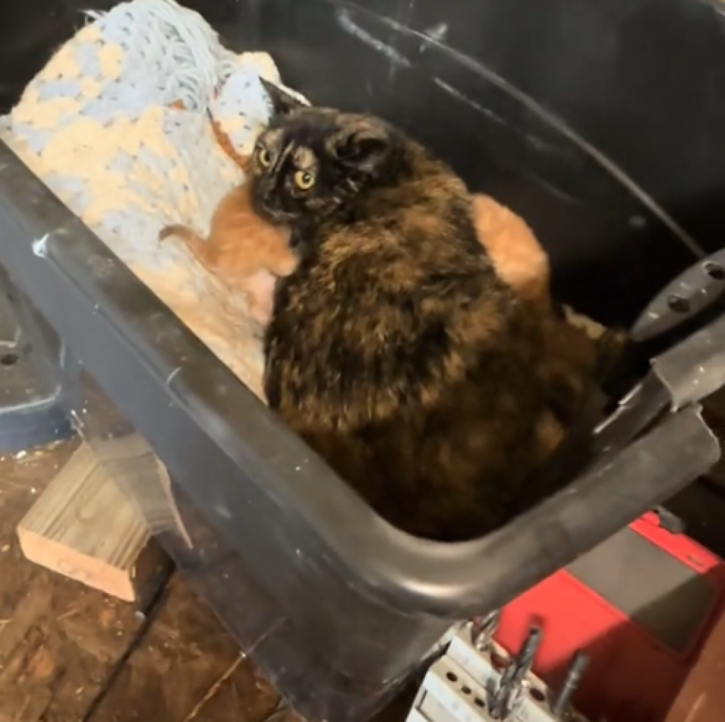 TikTok korisnica po imenu Viktorija (@victoriahelloisme) objavila je video na toj društvenoj mreži, prikazujući nekoliko uličnih mačaka sklupčanih unutar plastične kutije u njenoj garaži. U jednominutnom klipu, koji je do sada prikupio više od 5,3 miliona pregleda i 780.000 lajkova, vidi se šarena mačka sa tri narandžasta mačeta kako zajedno dremaju u ćebetu.