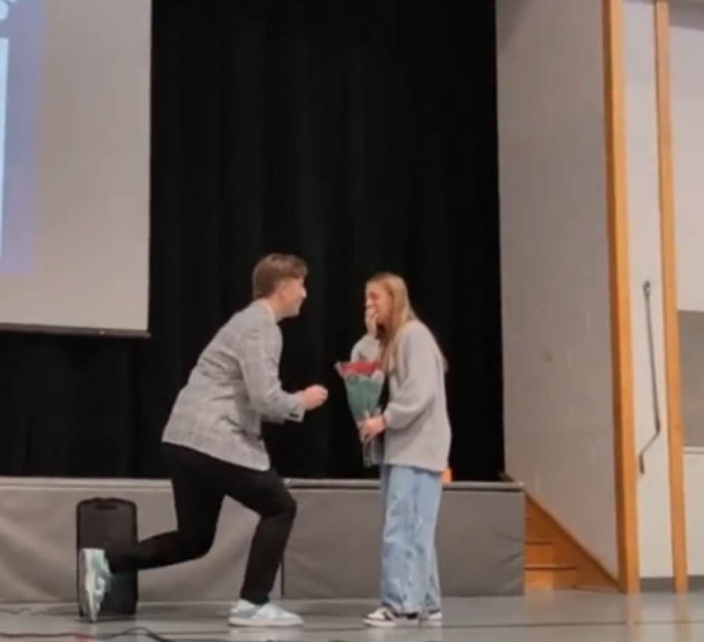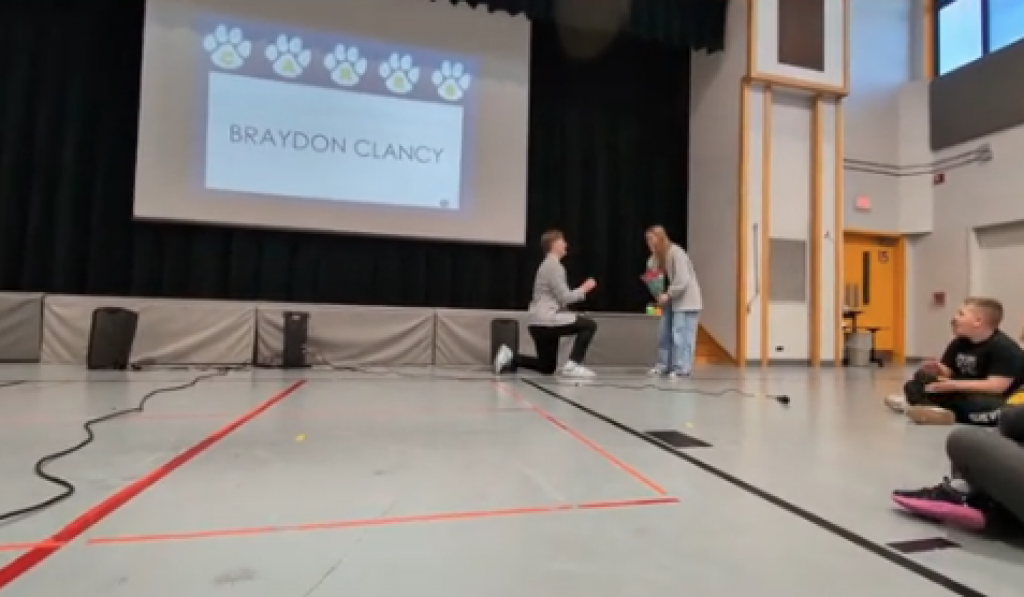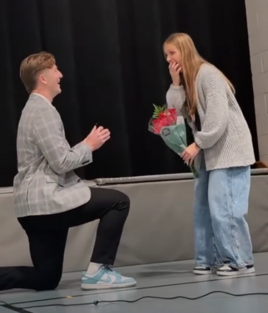 Klensi je prišao vidno šokiranoj učiteljici, dao joj buket, a potom izvadio prsten iz džepa. Kleknuo je dok je Herbertova stajala sa rukom prekrivenom preko usta, i tada je zaprosio.