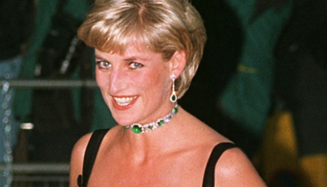 Uz haljinu je nosila teget somotski ogrtač, salonke od prevrnute kože i raskošnu ogrlicu sa biserima i safirom koju joj je poklonila kraljica Elizabeta II. Pojavila se i s Diorovom torbom koja je kasnije po njoj dobila ime – Lady Dior – i postala njen modni zaštitni znak.
