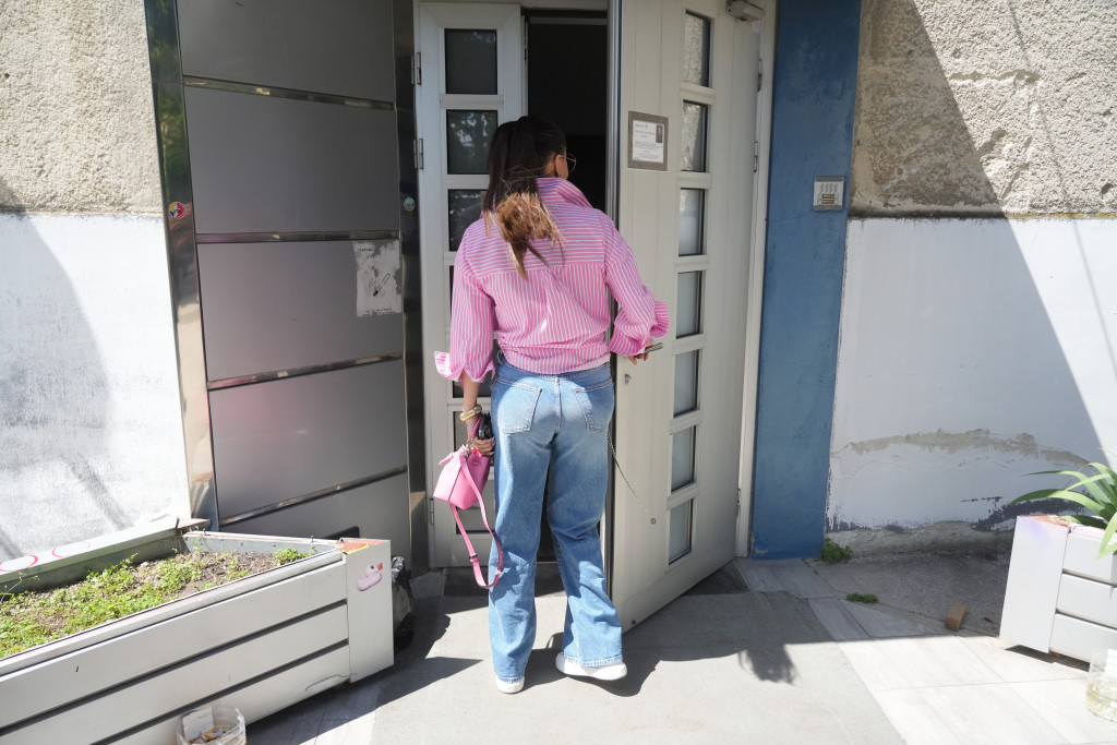 Uz to je uparila ravne, svetloplave farmerke širokih nogavica — trend koji se vratio iz Y2K mode — i bele patike, što dodatno doprinosi urbanoj i udobnoj estetici. Celu kombinaciju zaokružila je pink torbom, koja je savršeno uparena s bojom košulje, dok su zlatni lančići i kaiš-lanac oko farmerki uneli dašak glamura.