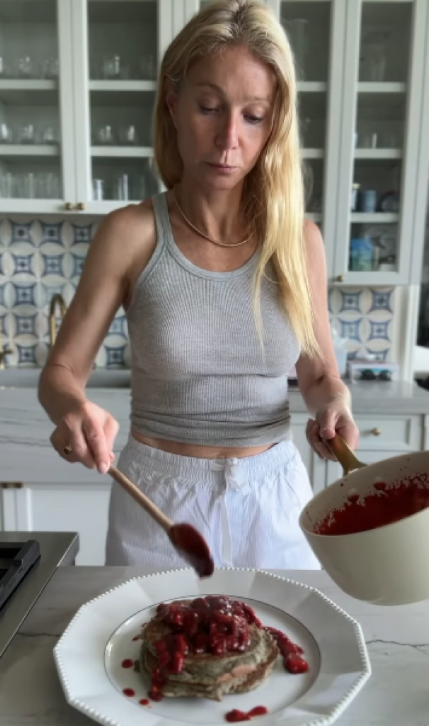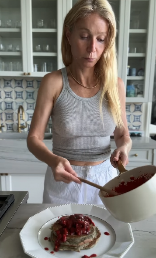 Glumica je u nedavnom Instagram videu, započela je još jedno izdanje serijala ,,Boyfriend Breakfast" pripremajući palačinke bez žitarica od badema i kokosa — i izazvala nam ozbiljnu glad. Tokom kuvanja je nosila jednostavni šorc pantalone na vezivanje i top sa halter-izrezom.
