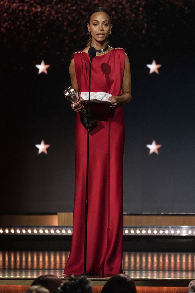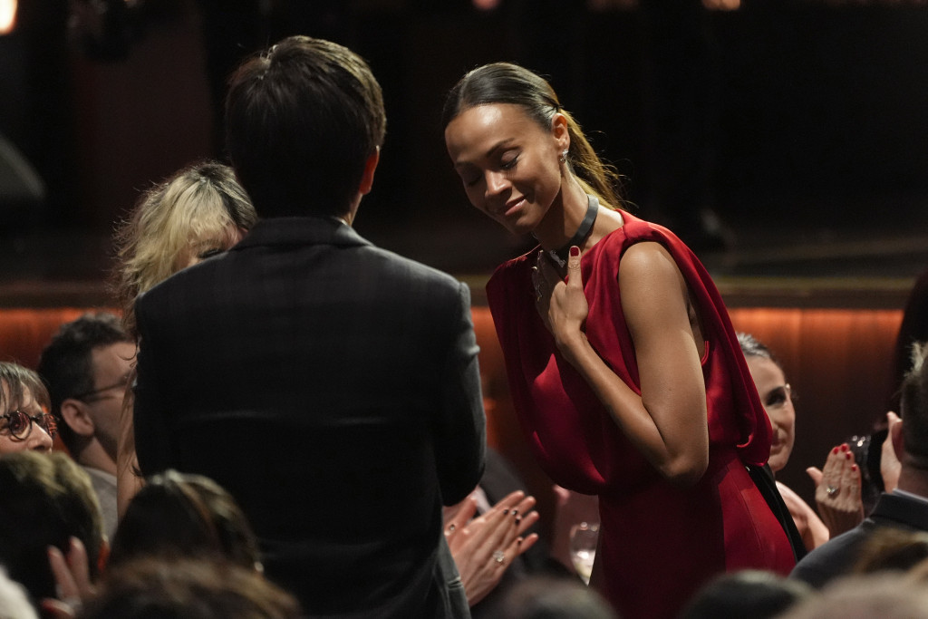 „Moja baka je došla u ovu zemlju 1961. godine. Ja sam ponosno dete imigrantskih roditelja, sa snovima, dostojanstvom i vrednim rukama,“ rekla je Saldanija sa suzama na očima na sceni. „I ja sam prva Amerikanka dominikanskog porekla koja je prihvatila Oskara, i znam da neću biti poslednja.“