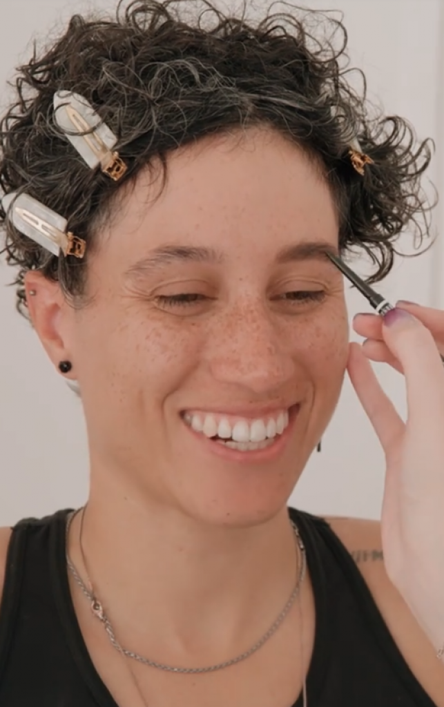 Šminkerka je krenula da joj oblikuje obrve i nanosi korektor, senku i maskaru. Zatim su usledili puder i bronzer.