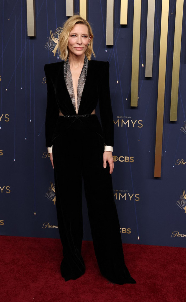 Kejt Blanšet, glumica i modna ikona napravila je pravi spektakl na sinoćnjoj 77. dodeli Emi nagrada, pojavivši se u elegantnom crnom kombinezonu sa dekolteom koji se pružao sve do pupka. Oštar V-izrez dodatno su istakli providni paneli ukrašeni kristalima, čineći kombinaciju zavodljivom i sofisticiranom.