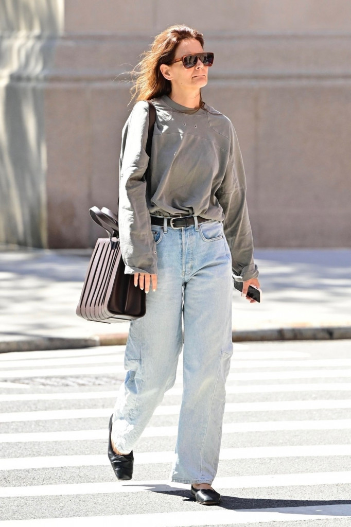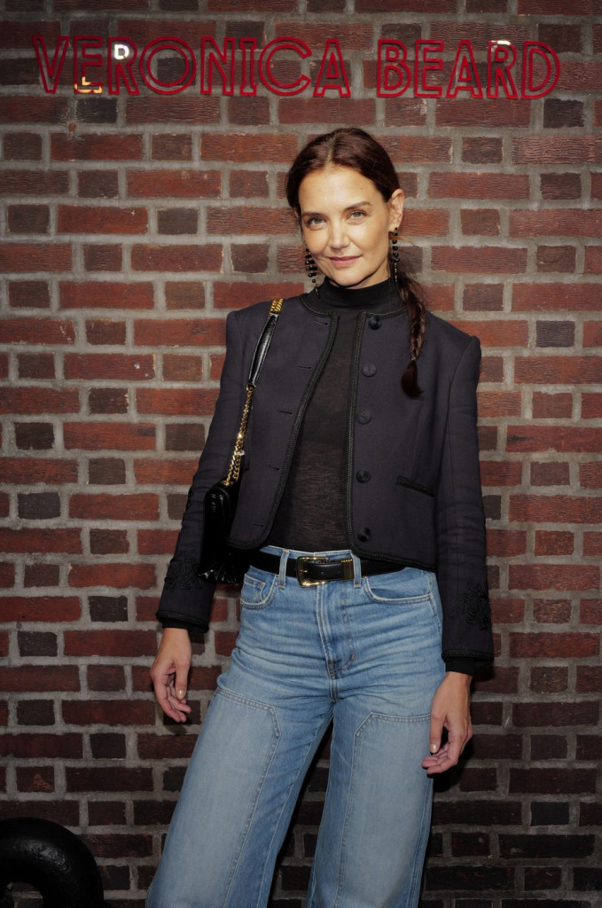 Ako ste u potrazi za ravnim farmerkama sa širim nogavicama, birajte modele sa slično strukiranim, visokim pojasom kao što smo videli kod Mariške Hargitej, ali sa prostranijim, ravnim nogavicama, nalik stilovima koje često nosi i Kejti Holms.