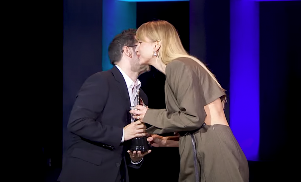 Kamera je zabeležila zvezdu sa ravnom kosom i šiškama — dok je postajala najmlađa dobitnica nagrade ,,Donostia" u istoriji festivala.