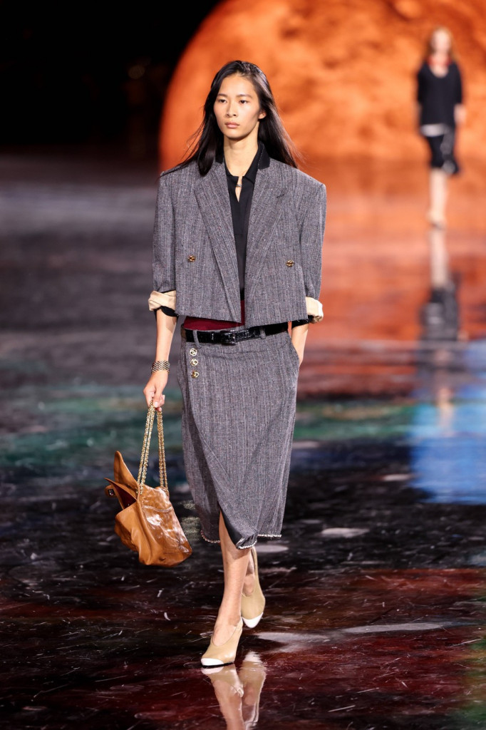 Na modnim pistama jesen/zima 2025/26 siva vunena suknja bila je svuda – od modela s naborima i dekonstruisanim krojevima u Pradi, preko filcanih verzija Miu Miu, do oversized plisiranih i naglašenih strukova kod Vaquera. Vivienne Westwood joj je dodala i punk notu kroz asimetrične krojeve tvida