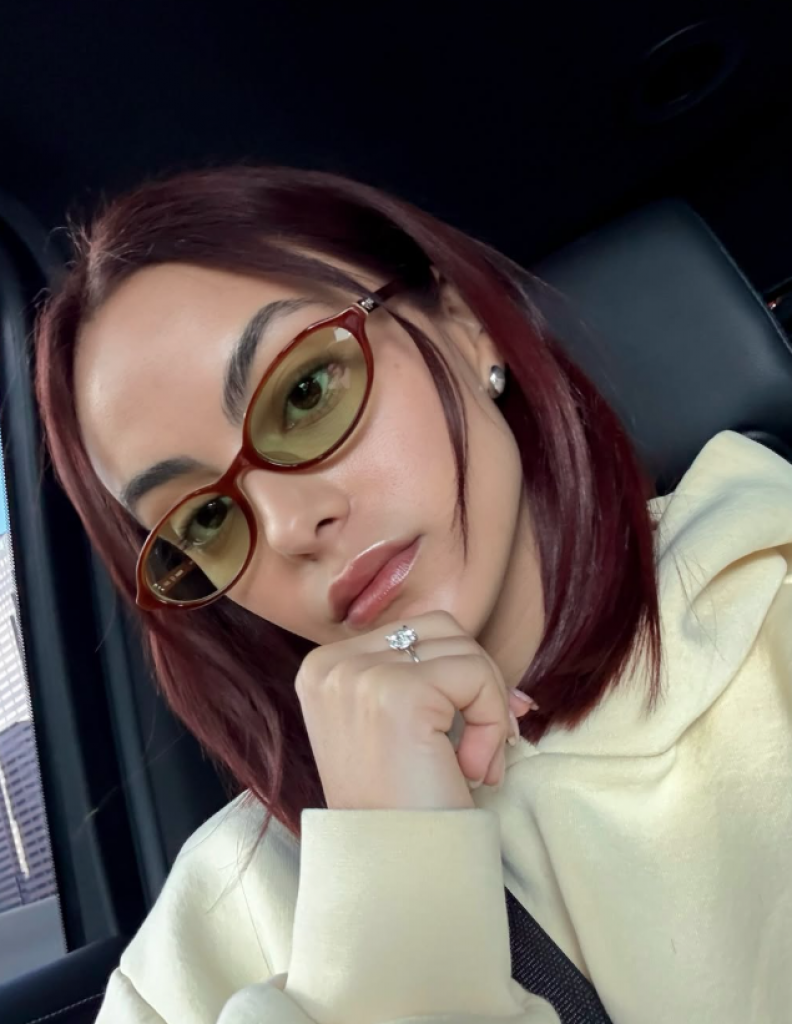 Mendesova je svoj lob ukombinovala sa zlatnim minđušama, dok je u nizu objavljenom na njenom profilu, nosila duksericu boje putera i sunčane naočare inspirisane 90-im godinama sa svojom skraćenom kosom.