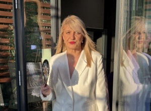 Za kraj, pevačica je podigla kosu u visok konjski rep, a šiške je ostavila da joj padaju niz lice.