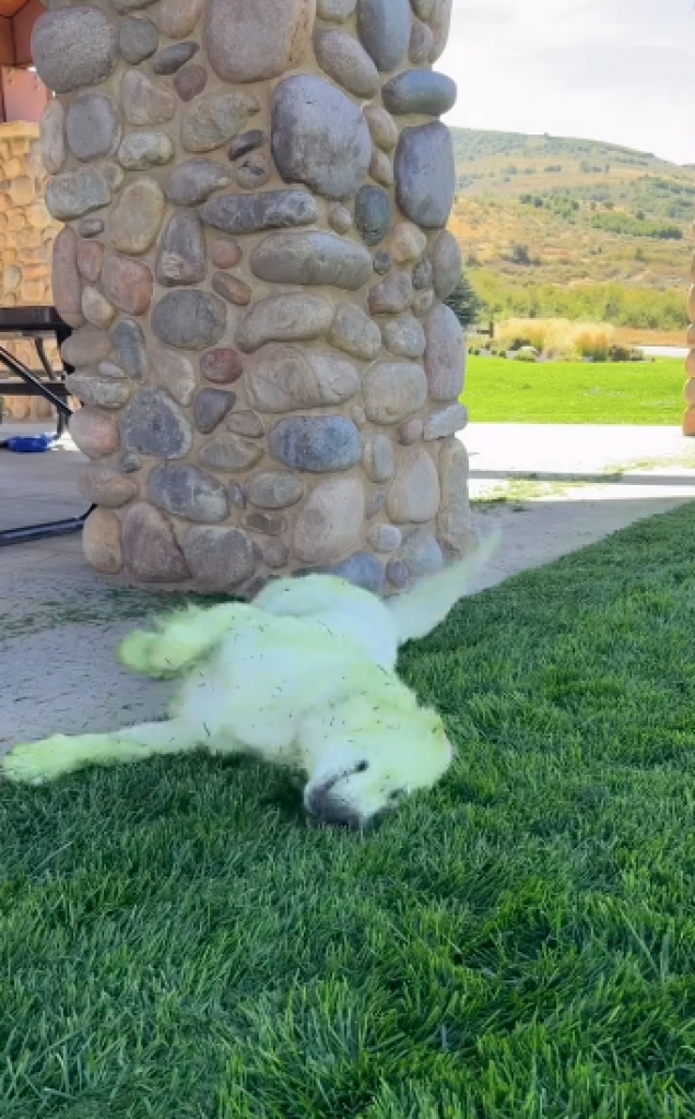 Vlasnik je snimak duhovito potpisao: „Pošaljite pomoć, moj beli pas je pronašao sveže pokošenu travu,” dok je u pozadini svirala pesma ,,So This Is Love?", što je dodatno pojačalo šarm celog trenutka.