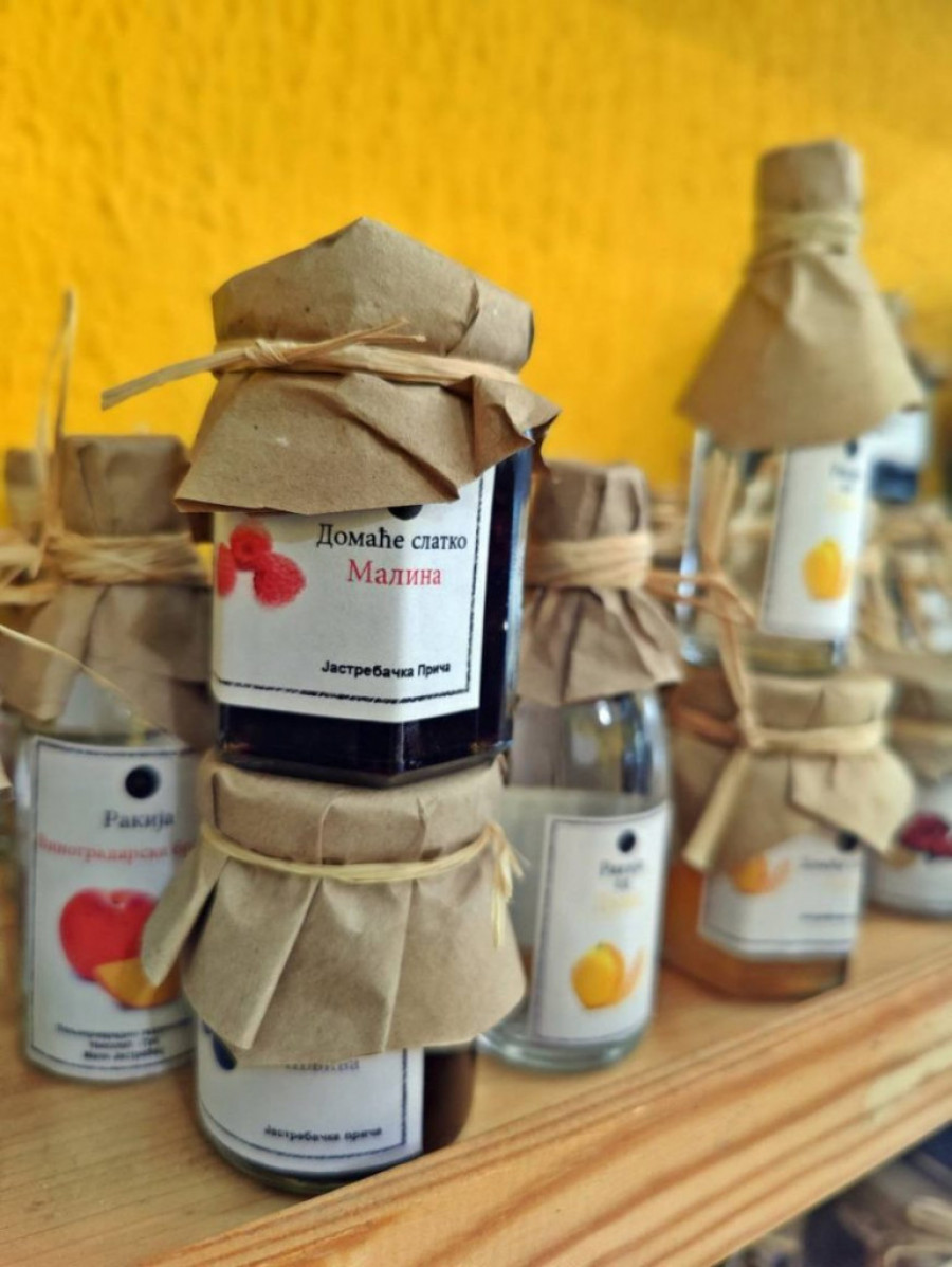 „Te teglice za avion, kako sam ih nazvala, najbolje idu. U teglice od 30, 70 i 100 ml, pakujemo brojne domaće proizvode: med od koprive, med od maslačka, džem od šljive, rakiju, ajvar… Imamo i tegle od kilogram i flaše od litar, jer kod nas kupuju i turisti koji imaju uplaćen kompletan prtljag, kao i naši ljudi koji cene domaću proizvodnju“, kaže Olga za sajt "Priče sa dušom" .
