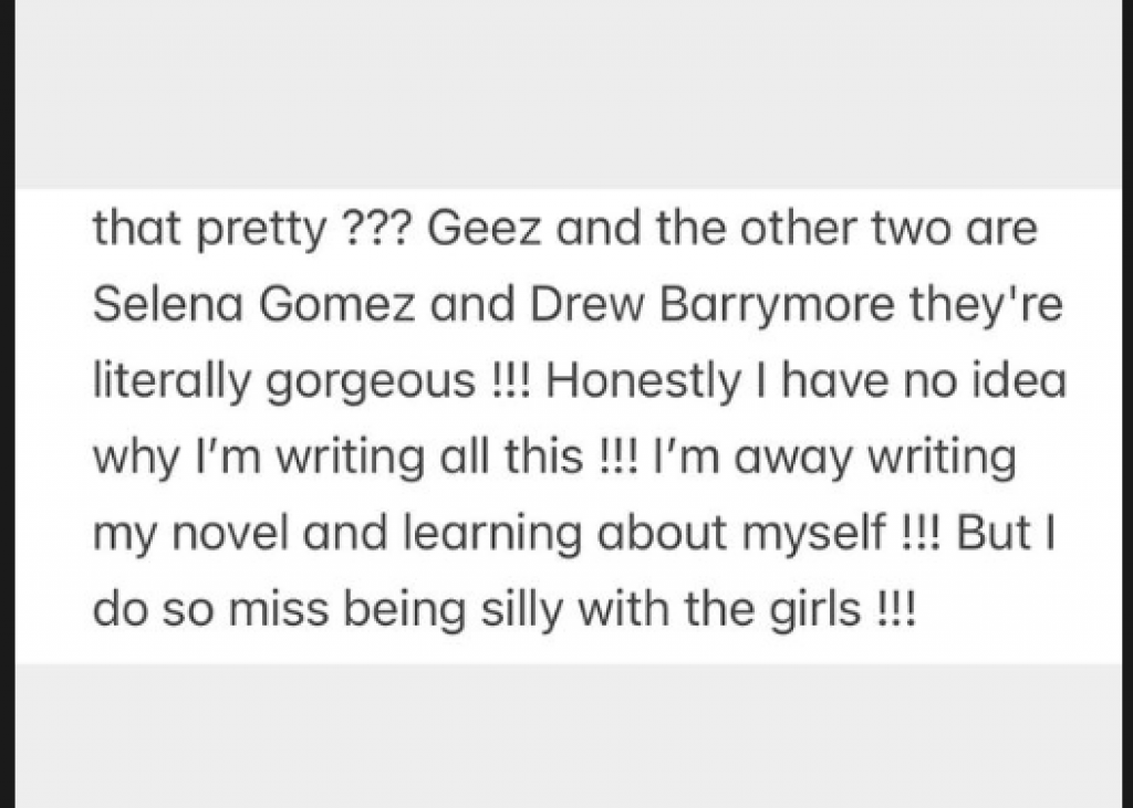 Spomenula je i Kendal za koju je napisala: "Da li je normalno da je neko toliko lep?" U svojoj objavi je spomenula i Selenu i Dru koje je opisala "apsolutno prekrasnima".