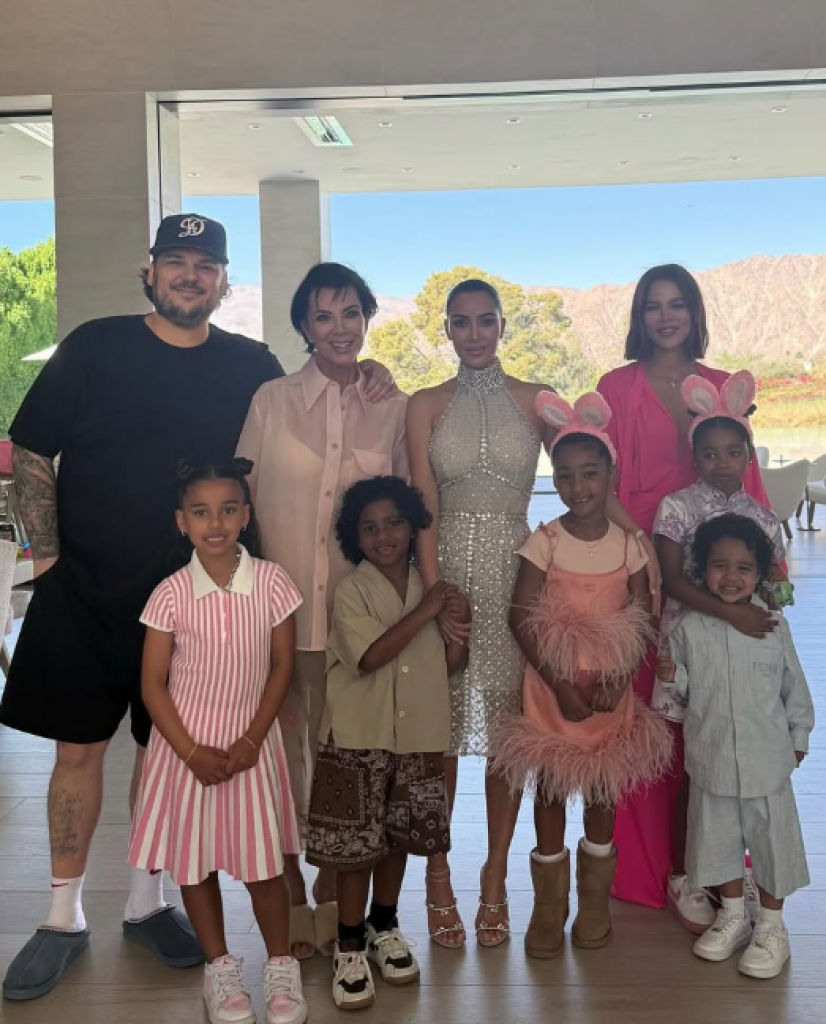 U Kiminoj objavi se nalazila i porodična fotografija u uskršnjim autfitima. Njihova mama Kris Džener, Rob i njegova ćerka Drim (8) su se pridružili Kim, Kloi i deci.