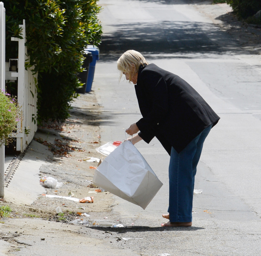 Fotografi isprva nisu mogli prepoznati glumicu jer je u radnu akciju krenula bosa, u farmerkama i ogrnuta sakoom, zbog čega se na prvu činilo kako se radi o beskućnici koja kruži oko nekretnina bogatih ljudi.