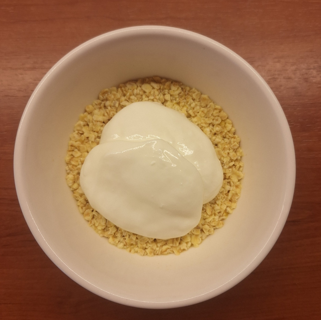 Nakon toga sam kašu prekrila aluminijumskom folijom i stavila je u frižider. Kada sam se probudila u kašu sam dodala grčki jogurt i malo meda i sve pomešala. Takođe sam dodala i malo soka od limuna.