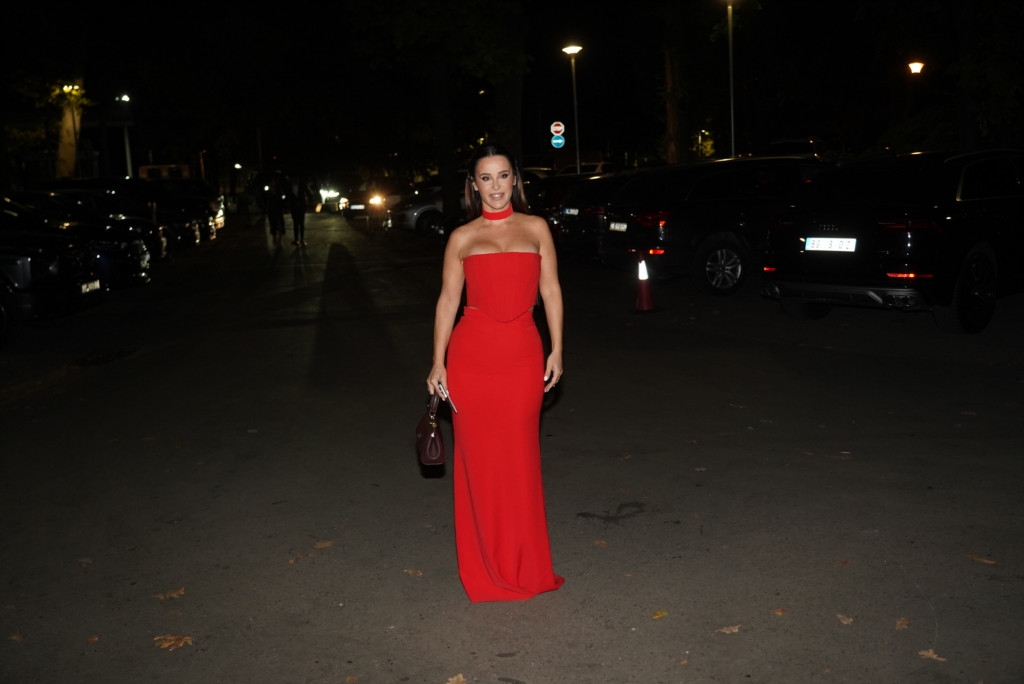 Veliku pažnju medija okupirala je pevačica Aleksandra Prijović, kojoj je ovo jedno od prvih pojavljivanja pred medijima otkad je postala po drugi put mama. Ona je odlučila da obuče crno odelo sa prugama koje vizuelno izdužuju figuru i daju posebnu dimenziju silueti. Ono što je zanimljivo jeste da su dominirale crna, crvena i siva nijansa.