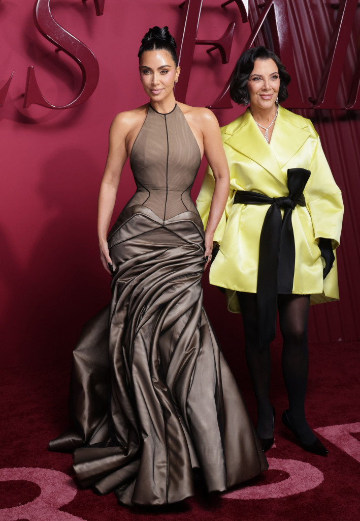Mogulka brenda SKIMS, 44, napravila je dramatičan ulazak na crveni tepih u upadljivoj metalik braon haljini sa draperijama, koju potpisuje Schiaparelli Couture, ali je izgled njene majke Kris Džener, 69, privukao svu pažnju.