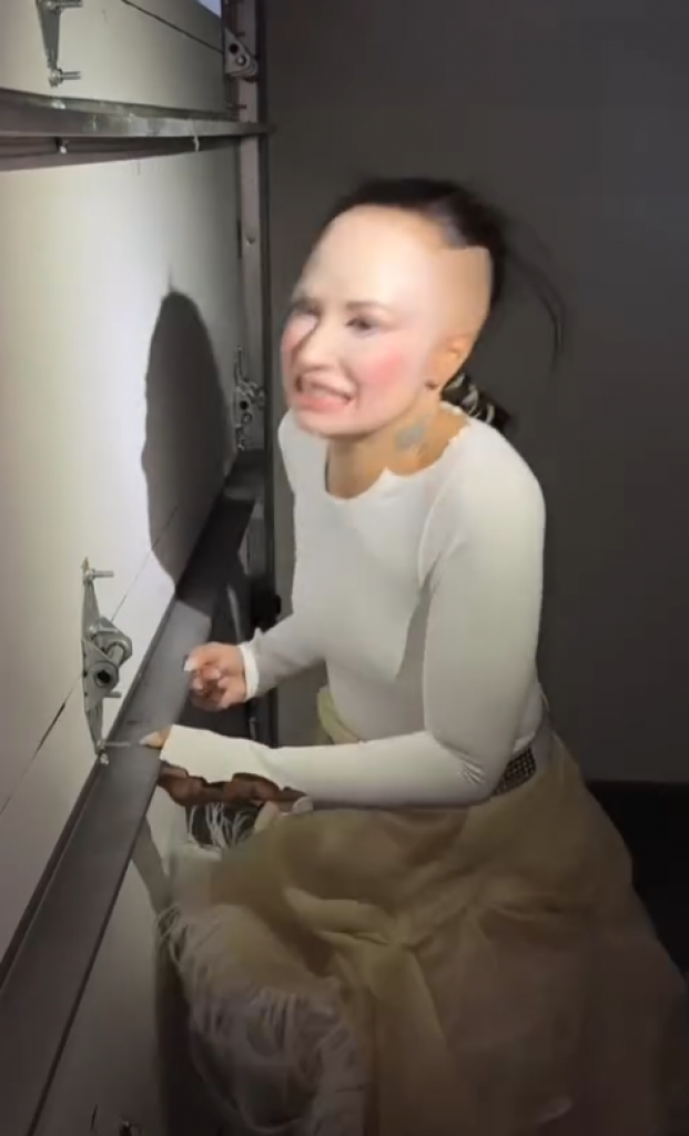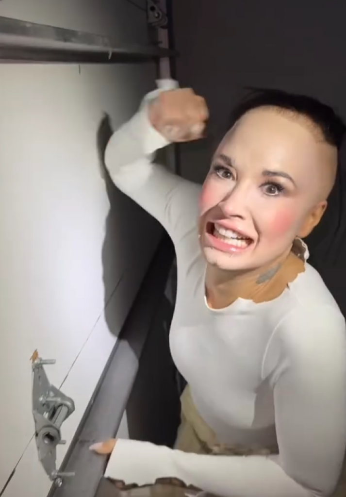 Zatim je pozirala u svojoj garaži kao da je Poot zastrašujuće stvorenje koje se šunja unutra — čak je dodala i zloslutnu senku mima. Lovato je potom objavila TikTok na kojem glumi ,,Poot", vrišti za pomoć i pokušava da izađe iz garaže.