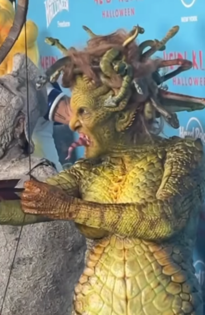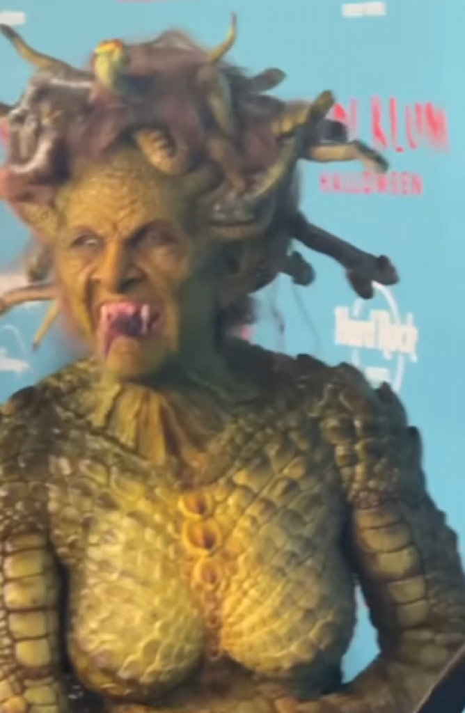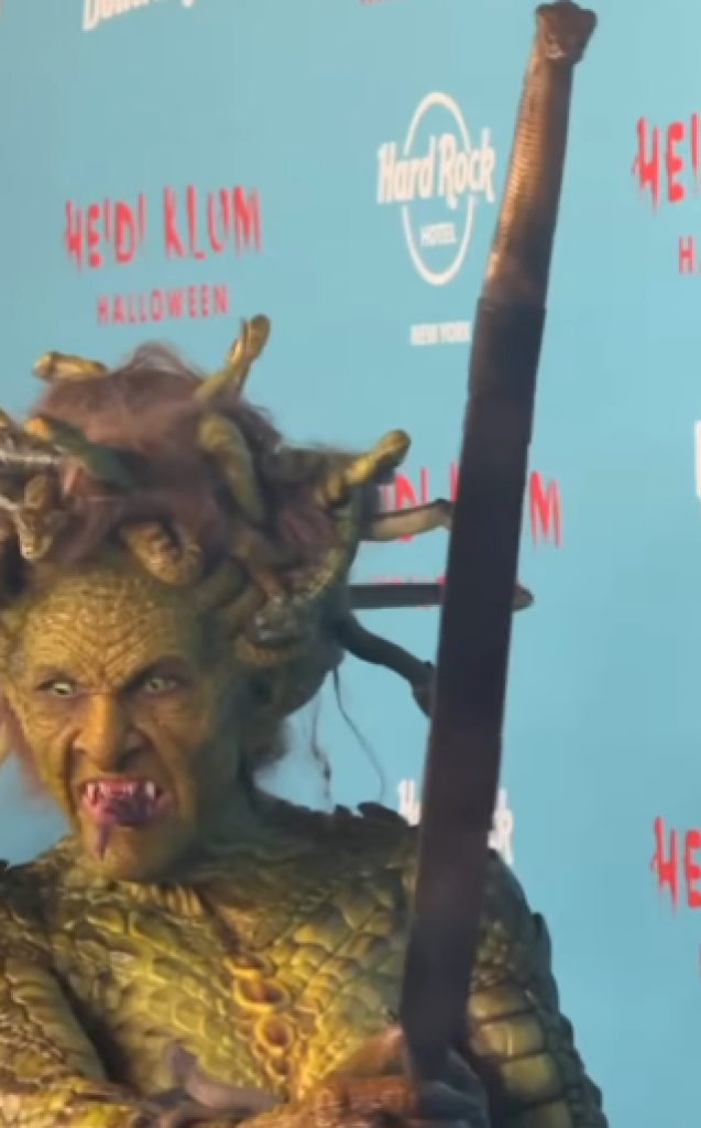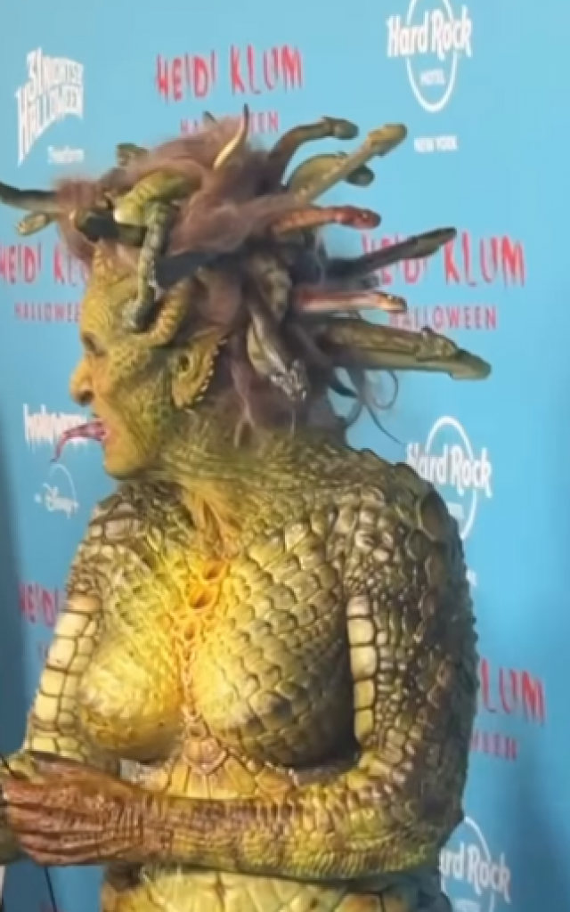 Hajdi se obukla kao mitska Meduza, a svoj transformaciju je premijerno prikazala na svojoj godišnjoj zabavi za Noć veštica u Njujorku, u petak, 31. oktobra. Njen suprug, Tom Kaulic je bio obučen kao grčki vojnik pretvoren u kamen. Prema grčkoj mitologiji, svako ko pogleda u strašnu Meduzu pretvara se u kamen.