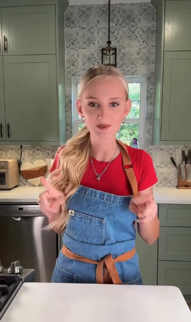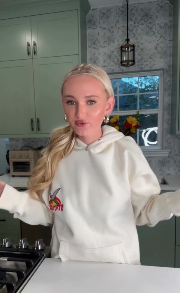 „Samo ću da ponesem stolicu sa sobom“, rekla je influenserka o tome kako se prilagođava pripremi Dana zahvalnosti tokom trudnoće. „Već imam malu kuhinjsku stolicu, ali [Dan zahvalnosti] je moja stvar, posebno tokom praznika zbog sadržaja — svi dolaze na moju stranicu po recepte. Izguraću sve, samo ću sedeti na svojoj stolici jer mi je to najvažnije.“