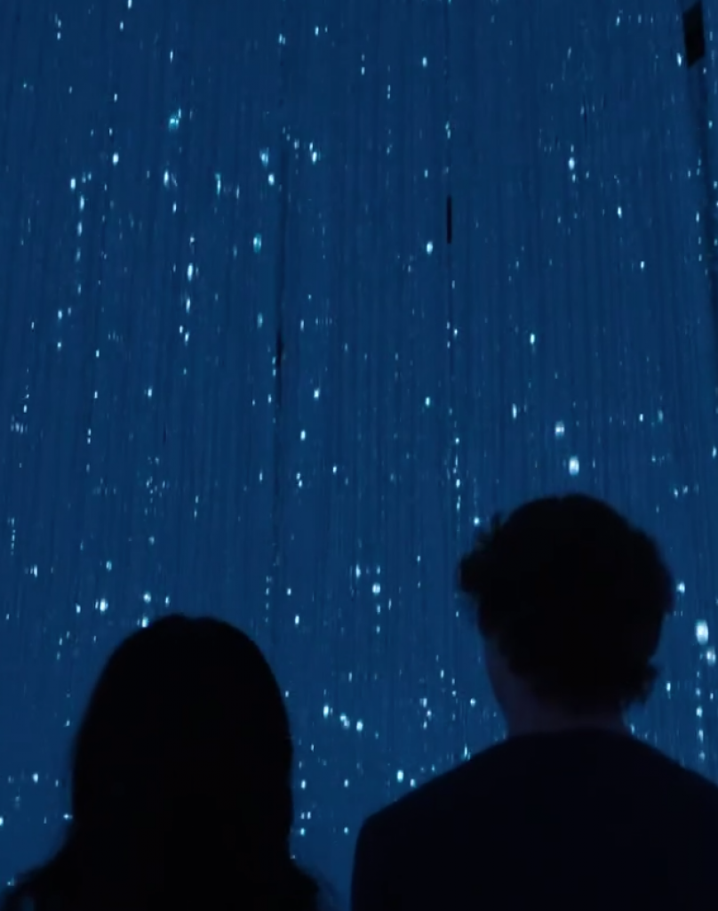 Par je u videu zajedno jeo suši dok se zaljubljeno gledao u oči. Na drugom snimku se par našao na interaktivnoj umetničkoj izložbi.