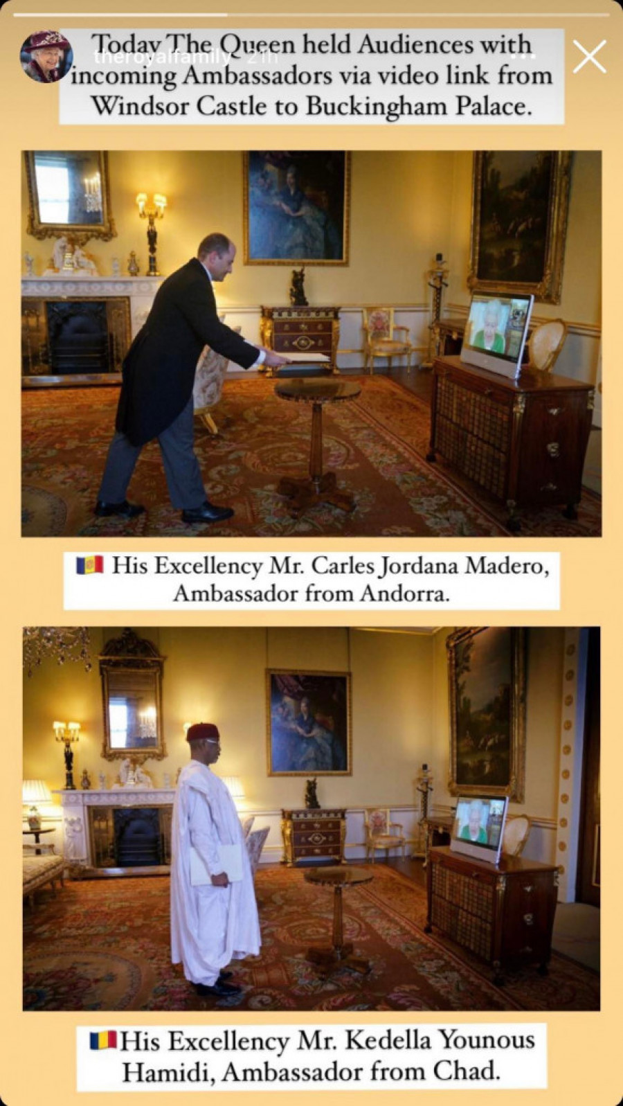 Čini se da se monarh oseća dovoljno dobro da se vratila svojim zvaničnim kraljevskim dužnostima. Njeno Veličanstvo se 1. marta sastala sa ambasadorima Čada i Andore. Kao i na drugim sastancima tokom tekuće pandemije COVID-19, sastanaj je održan putem video prenosa. Monarh se trenutno nalazi u zamku Vindzor. Diplomate su, zauzvrat, bile u Bakingemskoj palati.